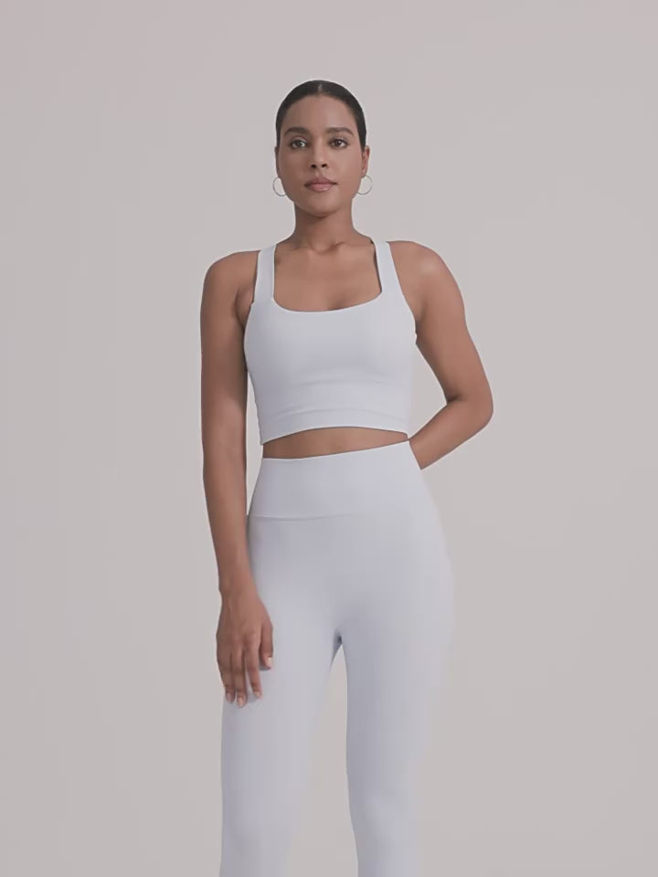 - Elegant Butterfly Back Bra: Designed with a butterfly-inspired open-back silhouette, the bra enhances airflow while creating a striking, feminine look. It offers comfortable medium-impact support with a sculpted fit that highlights your back and shoulders — perfect for yoga, pilates, stretching, and low-impact movement.